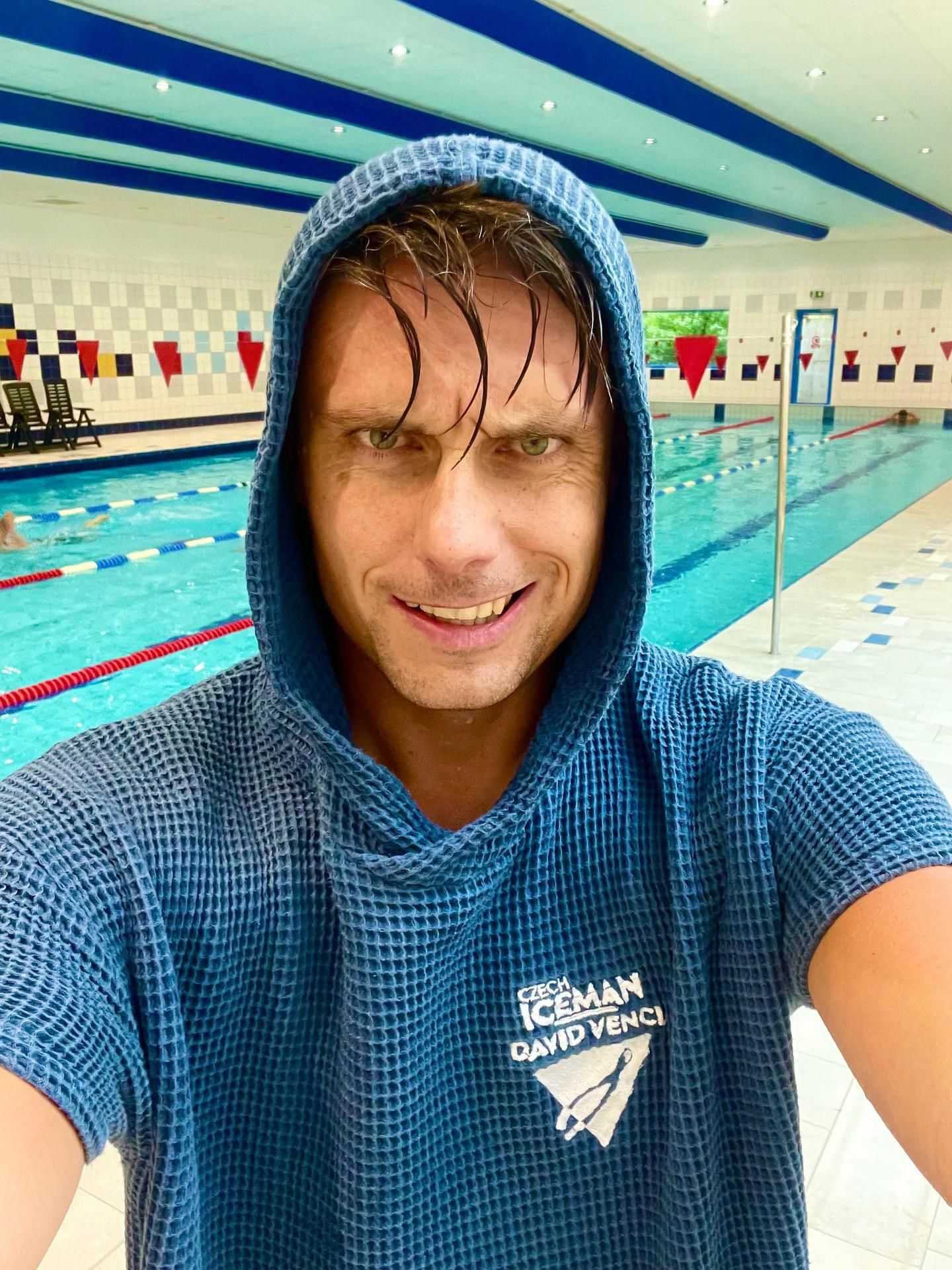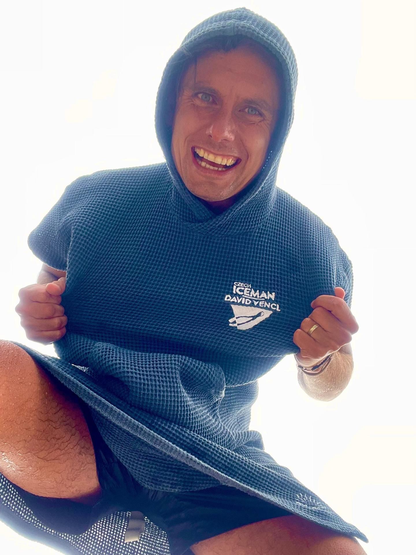 Vaflové modré balněné pončo s bílou výšivkou ICEMAN